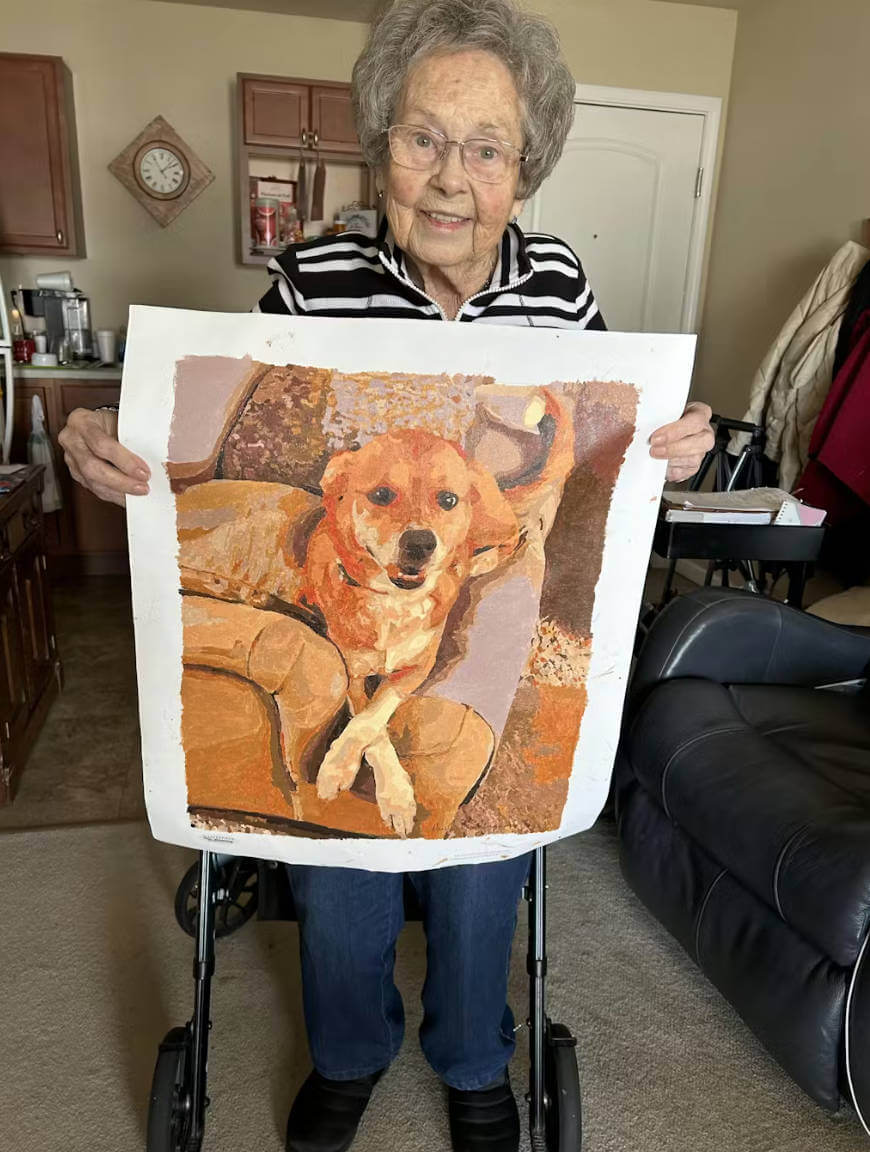 My mother painted this picture of my beautiful dog Willie who crossed the rainbow bridge four months ago. It is such a striking likeness of my sweet boy and my mother loved painting it. Thank you for this beautiful remembrance