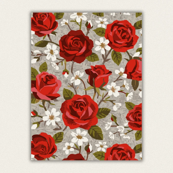 Bring Timeless Beauty to Your Home with Red Rose DIY Art Elevate your space with the elegance of our Red Rose Floral Paint by Numbers kit. This design blends deep crimson roses with delicate white jasmine blossoms, creating a sophisticated vintage aesthetic that fits any room.